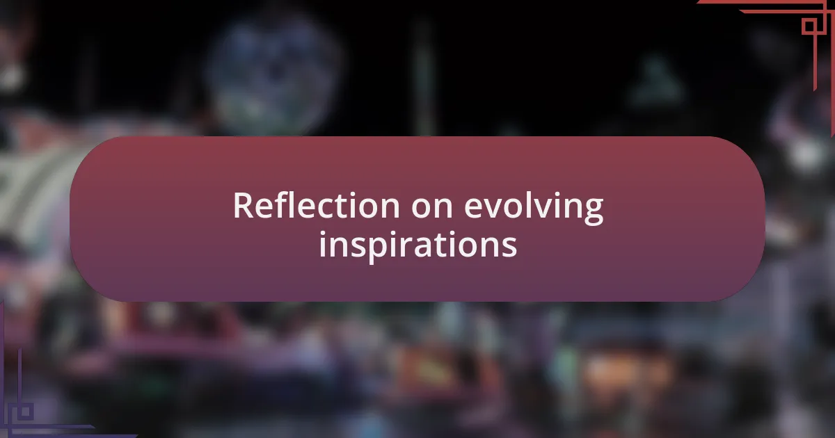 Reflecting on my inspirations reveals a tapestry of experiences that continue to shift over time. I remember a rainy afternoon in my childhood, sitting by the window as I watched the world blur by. The simple act of observing the droplets racing down the glass ignited my fascination with nature’s rhythms, reminding me how beauty often lies in the smallest details.